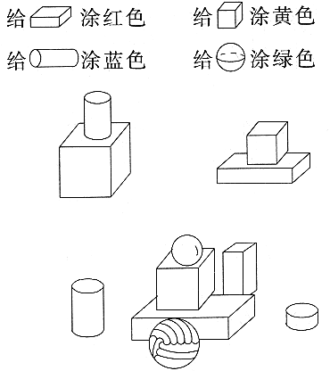 按要求涂颜色. 试题答案 答案: 解析: 先认一认,再按要求涂色. 提示: