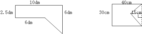 分析 ①利用分割法,把图形分割成一个长方形和一个三角形,根据长方形的面积公式:s=ab,三角形的面积公式:s=ah÷2,把数据分别代入公式求出它们的面积和即可.