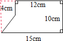 解答 解:15×10-(4+10)×(15-12)÷2=150-14×3÷2=150-21=129(平方厘米)答:图形的面积是129平方厘米.