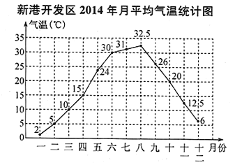 (1)新港开发区2014年的月平均气温,从(______)月份开始逐渐上升,(______)月份的月平均气温最高。