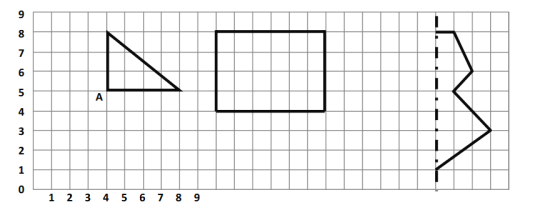 用数对表示点A的位置是(4,5);(1)、(2)和(3)的图例如下:
