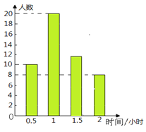 (2)总人数×活动1.5小时对应百分比=活动1.5小时人数;
