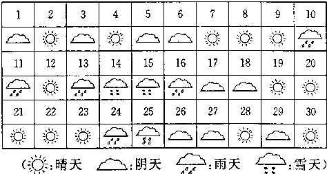 (4)通过上面的统计表,我知道天气变化无常,晴天较少,阴雨天气较多.解答:解:(1)